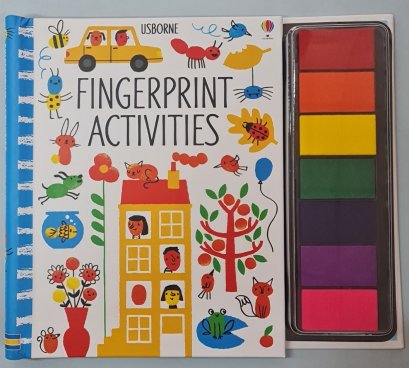หนังสือกิจกรรมพิมพ์ศิลปะลายนิ้วมือสำหรับเด็ก เนื้อหาเป็นภาษาอังกฤษ มีรูปภาพประกอบสวยงาม สีสันสดใส